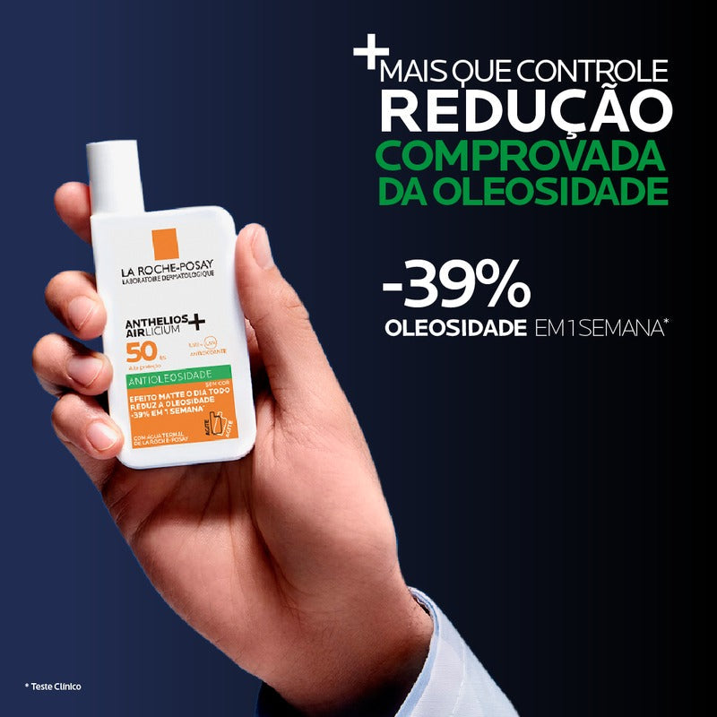 Protetor solar facial. La Roche-Posay Anthelios Airlicium Fluido FPS 50 oferece cuidado diário para a pele e ação antioleosidade.