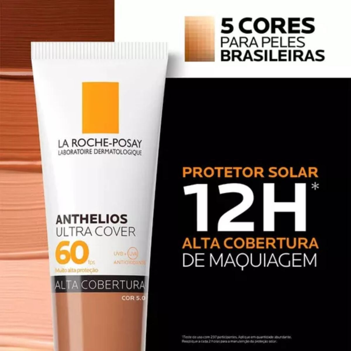 O Protetor Solar Facial com Cor La Roche-Posay Anthelios Ultra Cover FPS60 é o 1º protetor solar com performance de maquiagem, oferece alta proteção e 12 horas de cobertura de base em uma única camada. Possui toque seco e é oil free, a tecnologia inovadora por trás dos pigmentos faz com que a cobertura tenha maior durabilidade e um sensorial super agradável no rosto.