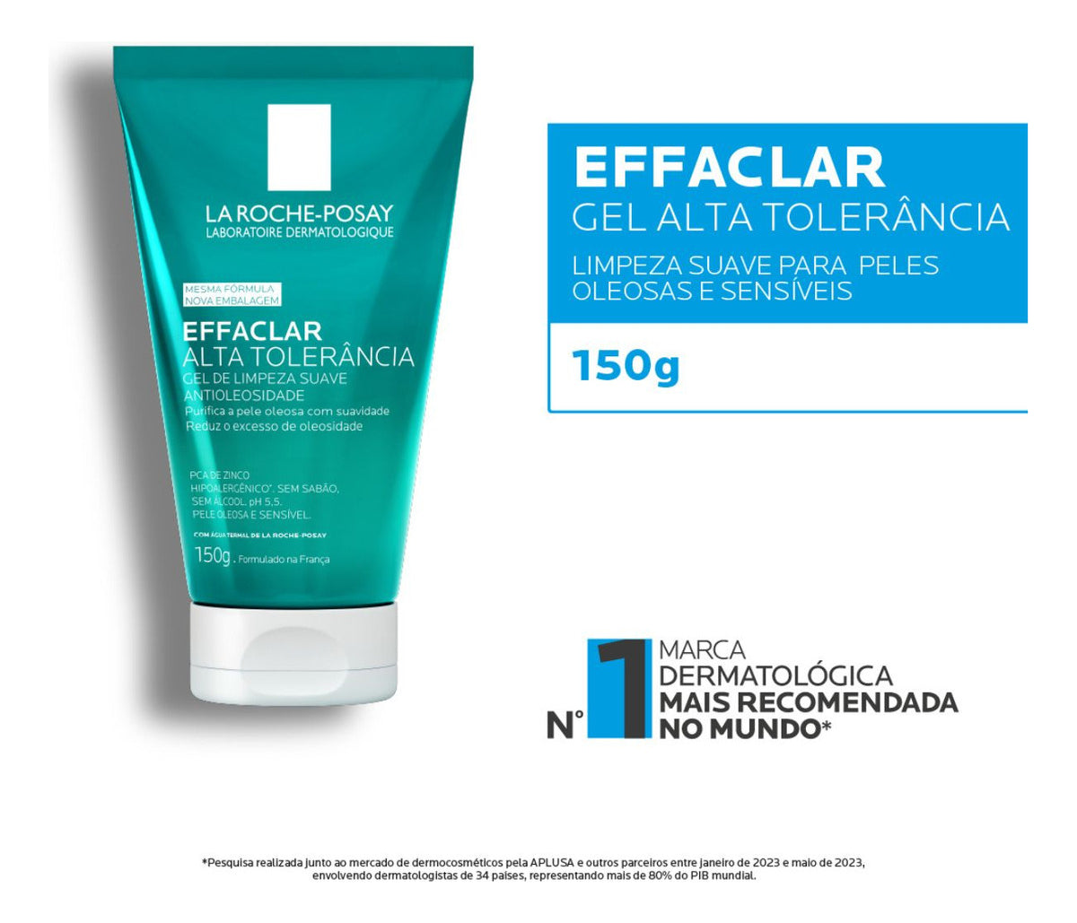 Gel de limpeza para peles mistas e oleosas. La Roche-Posay Effaclar Alta Tolerância controla a produção de sebo excessiva e limpa com suavidade.
