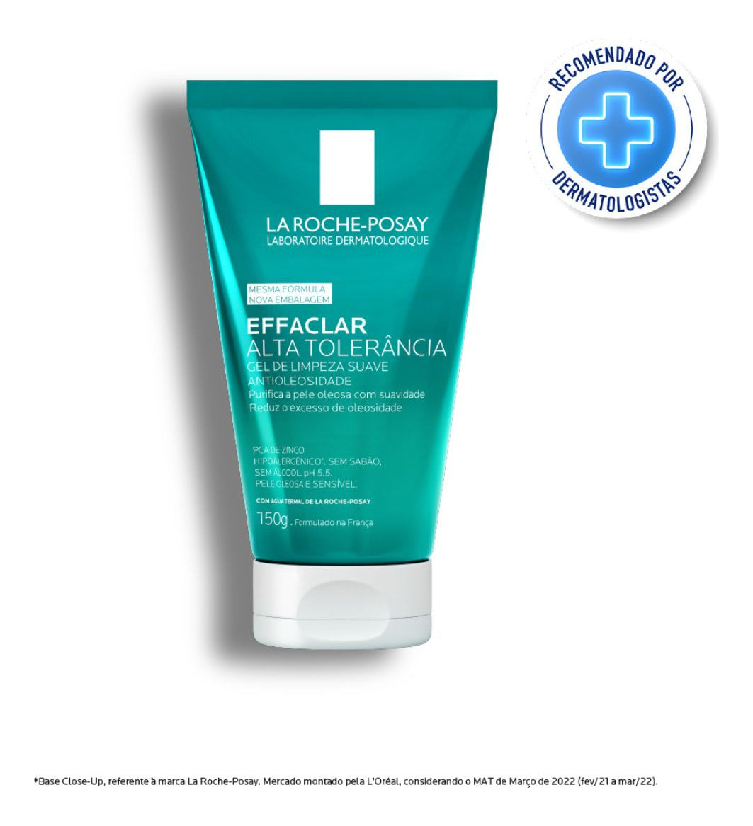 Gel de limpeza para peles mistas e oleosas. La Roche-Posay Effaclar Alta Tolerância controla a produção de sebo excessiva e limpa com suavidade.