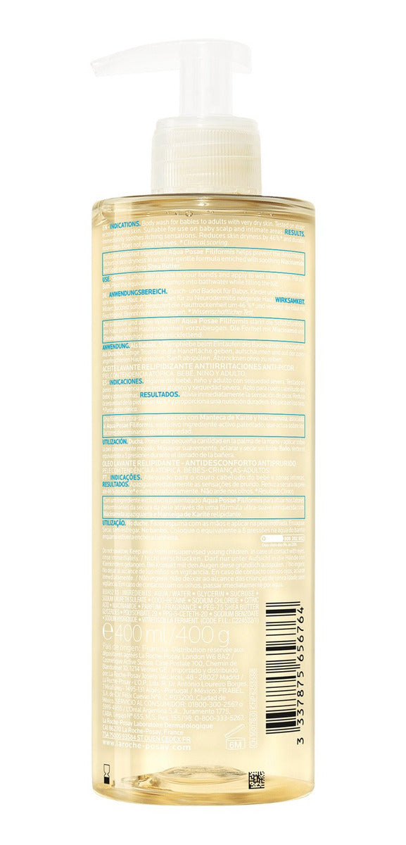La Roche-Posay Lipikar Cleansing Oil AP+ proporciona uma limpeza calmante com alta eficácia em hidratação e ação anticoceira. Sua fórmula ajuda a reequilibrar a pele e hidratar de forma duradoura para reduzir a sensação de ressecamento intenso. Adequado para bebês, crianças e adultos, pode ser usado no rosto e corpo.