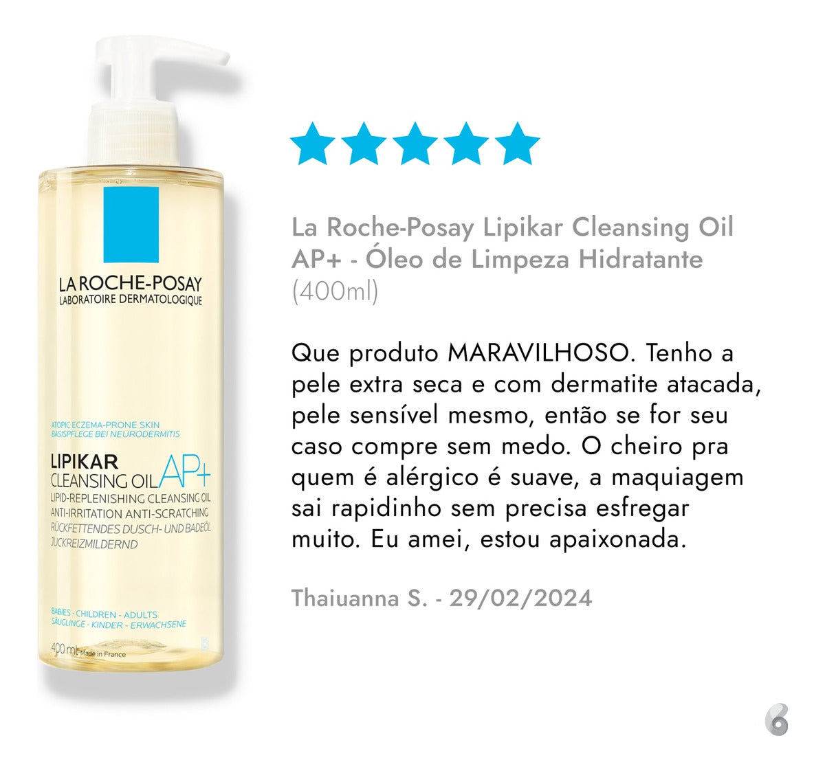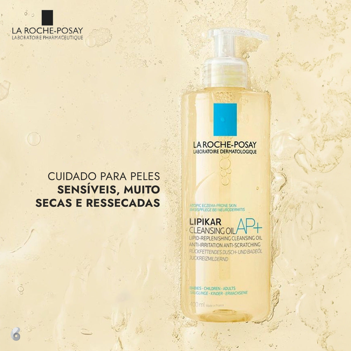 Óleo de limpeza hidratante para peles sensíveis, muito secas e ressecadas. La Roche-Posay Lipikar Cleansing Oil AP+ nutre a pele e protege do ressecamento.
